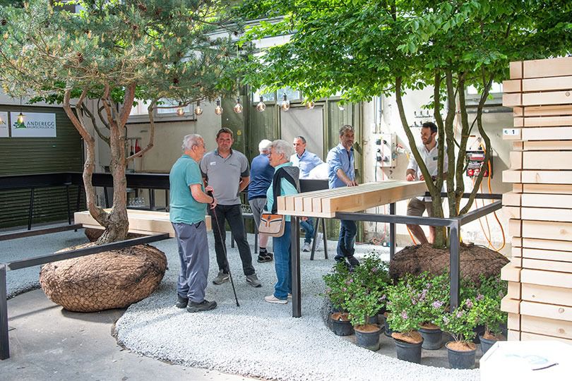 Auf grossen Anklang stiess aber auch die Begegnungszone zwischen der Markthalle und dem Ausstellungszelt. Das herrliche Sommerwetter verwandelte den Platz, mit den schattenspendenden Bäumen und den vielen Sitzgelegenheiten, in ein südländische Piazzetta, die stets gut besetzt war.